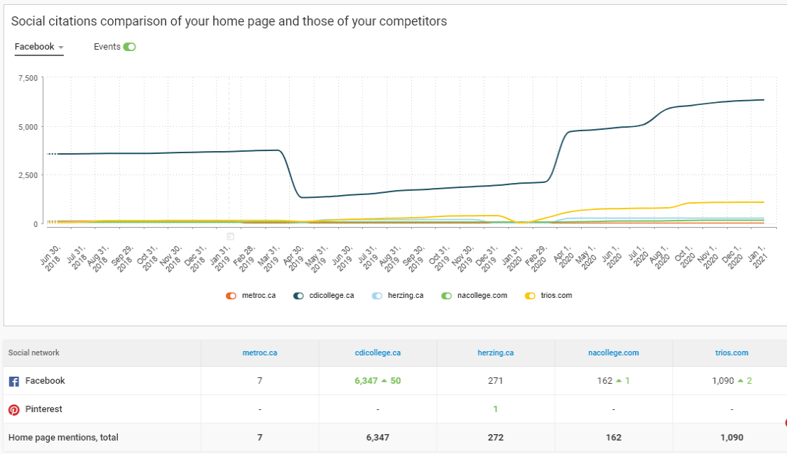 Pump up your client's audience. Measure the success of activity on your client's and their competitors on social media by viewing citations and social network engagement (Likes, shares, comments) as well as referral traffic sent to your website.